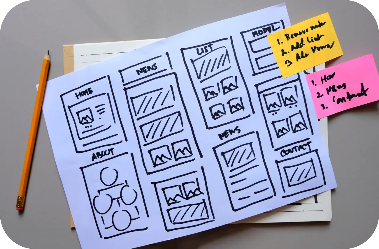 Đã đến lúc biến tầm nhìn của bạn thành hiện thực! Mỗi trang có bản thiết kế riêng, với các bản phác thảo phác thảo bố cục, vị trí nội dung và luồng thông tin. Hãy coi nó như việc xây dựng khuôn khổ trang web của bạn, từng khối pixel một.